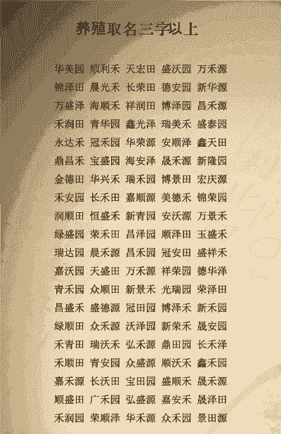 鑫源、 盛兴、 泽林、 瑞生、 昌隆:五行属木,寓意吉祥,适合各类养殖场。