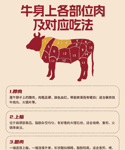 犍牛肉和乳牛肉通常品质较好,适合购买。