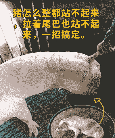 倒提甩出:用一只手抓住仔猪的两只后腿,另一只手托住仔猪的头部,将仔猪倒提起来,然后剧烈甩动仔猪,直到仔猪发出叫声,这有助于将气管中的黏液排出。注意,甩的时候一定要抓紧仔猪的后腿,不要将仔猪甩出去了。