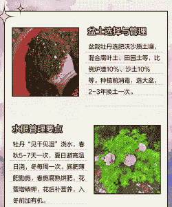 温度:牡丹花喜欢温暖的生长环境,适宜生长温度为17~20℃,夏季温度高于25℃会进入休眠期,冬季温度过低时需移至温暖处养护。