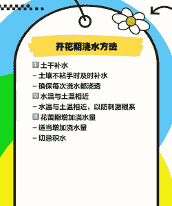 开花期要保持土壤湿润,可在早晚分别浇水,浇水要以浇透但不积水为主。