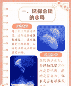 换水:建议定期换水,夏天每周一次,冬天每两周一次,每次换水量为总水量的1/10,换水时要注意避免水流直接冲击水母。