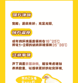 育雏期:刚出壳的芦丁鸡雏鸡对温度要求较高,前一周温度保持在36-38℃,之后每隔两天降低1℃左右,直到降至室温(25℃以上)。可以使用加热灯、温控器等设备来维持温度稳定。