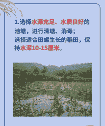 还要做好池水酸碱度的调节,每15天左右施生石灰来调节PH值,螺池的池水PH值应保持在7-8左右。同时严防水质污染,凡含强铁、强硫质以及受化肥、农药污染或工业废水都禁止使用。一旦发生污染,要立即排干池水,换注新水。