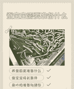 准备器具和环境:需要准备蚕室、蚕具以及桑叶,并对蚕具和蚕室进行彻底消毒。蚕蛹喜温暖、干燥的环境,因此应选择合适的地点进行养殖。