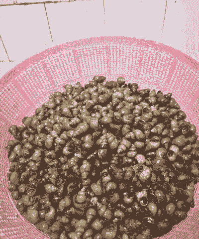石螺繁殖季节在春季,收获时尽量留下子螺收取成螺,保存一部分用于自然繁殖的雌性母螺。