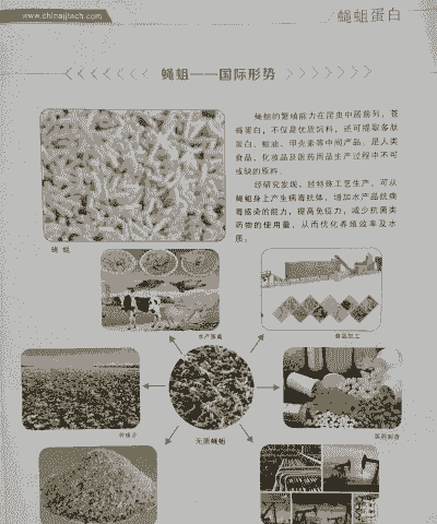 饲料:蝇蛆饲料适口性好,转化率高,可以用蝇蛆代替部分或全部鱼粉作饲料喂养畜禽、鱼类等。