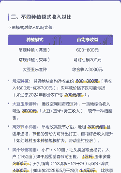 综上,玉米种植的收益需在科学管理、技术投入与市场环境协同作用下实现,普通农户年收益约600-2000元/亩,高产且成本控制良好的情况下可达更高水平。