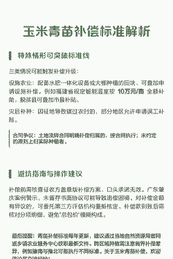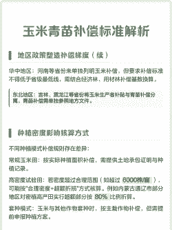 五、其他建议种植结构调整: 若种植面积未达标准,可考虑粮饲兼用玉米等新型补贴项目(如每亩75元种子补助); 风险规避