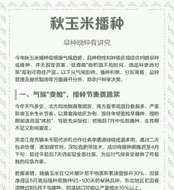 南方地区秋季玉米种植时间及相关注意事项如下: