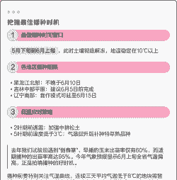 - 需防范倒春寒导致的粉籽或烂芽,建议在4月25-5月10日播种。