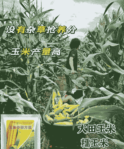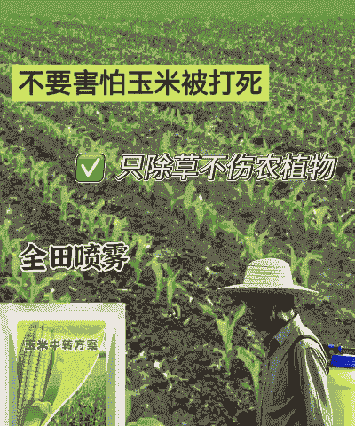 - 使用20%克芜踪水剂200ml或10%草甘膦水剂600-800ml兑水450升,覆盖玉米行间定向喷洒。
