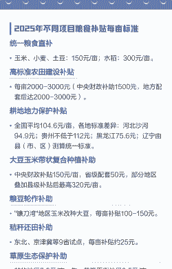 :2025年新增大垄密植补贴25元/亩,若按此标准计算,总补贴可能达到94.78元/亩。