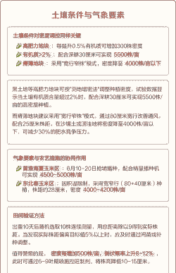 :多数地区通用,适合中等肥力地块。高密度种植- 采用密植技术(如紧凑型杂交品种),亩植可达4000-4500株,需配合高肥力土壤和精细管理。