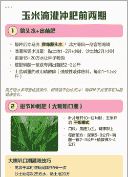 玉米滴灌肥的使用方法需结合不同生育期需求和滴灌技术规范,具体可分为以下要点: