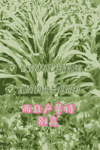 产量可达每亩8-12吨,最高15吨以上,年收割6-8次。茎秆粗壮,分蘖力强,再生能力突出,适合规模化种植。