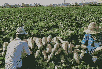 瓜秧6-7片真叶时,根据爬蔓方向,培定亩土,使瓜秧向同一方向有序生长。在伸蔓之前,靠种植台外侧两面要各趟一犁,以便灌水,同时勤铲防杂草。