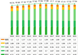 - 小麦种植面积波动较小,2021年小幅增加后保持稳定