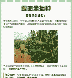,此时小麦已成熟,土壤温度稳定在25℃左右,有利于玉米正常发芽和生长。调整播种时间