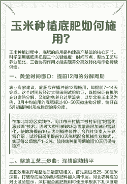 玉米种植后需施用多种肥料,根据生长阶段和需求可分为以下五类: