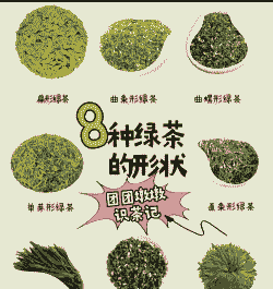 2.碧螺春:产自中国江苏吴县太湖的洞庭山,外形卷曲成螺,故得名。冲泡后香味扑鼻,滋味醇厚,茶汤碧绿清澈,叶底透亮嫩黄,是中国绿茶中的珍品。