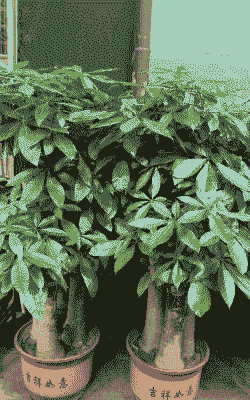 发财树株高9-18米,叶片互生,小叶5-9片,全缘,花单生在叶腋处,具梗,雄蕊多数,基部合生成管,花萼呈杯状,花丝全部为白色,果实为绿色,发财树喜高温、高湿的气候,耐寒力差,幼苗忌霜冻,最佳的生长温度在20-30摄氏度之间。