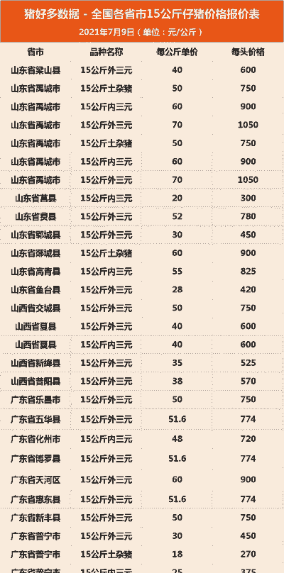 根据2025年3月11日发布的最新数据,15公斤(约30斤)仔猪的价格情况如下: