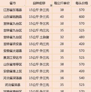 全国15公斤外三元仔猪均价为 38.95元/公斤