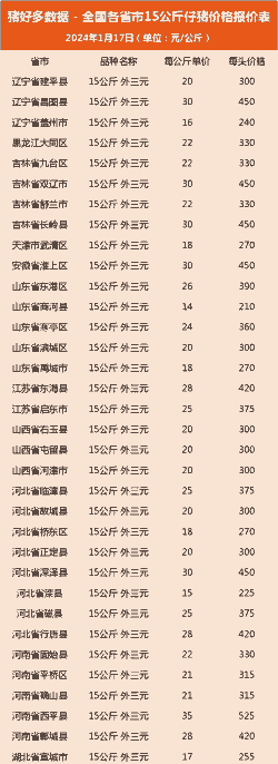 :江苏、安徽、山东基础价480-580元/头,超重15元/kg。- 华南地区:广东、广西7公斤仔猪480-580元/头。