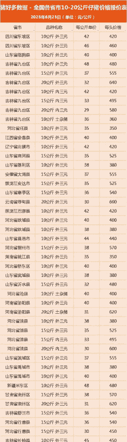 根据2025年3月发布的最新市场数据,6公斤小猪仔的价格范围主要集中在 30-55元/公斤,具体受地区、养殖成本及市场供需影响。以下是分地区价格参考: